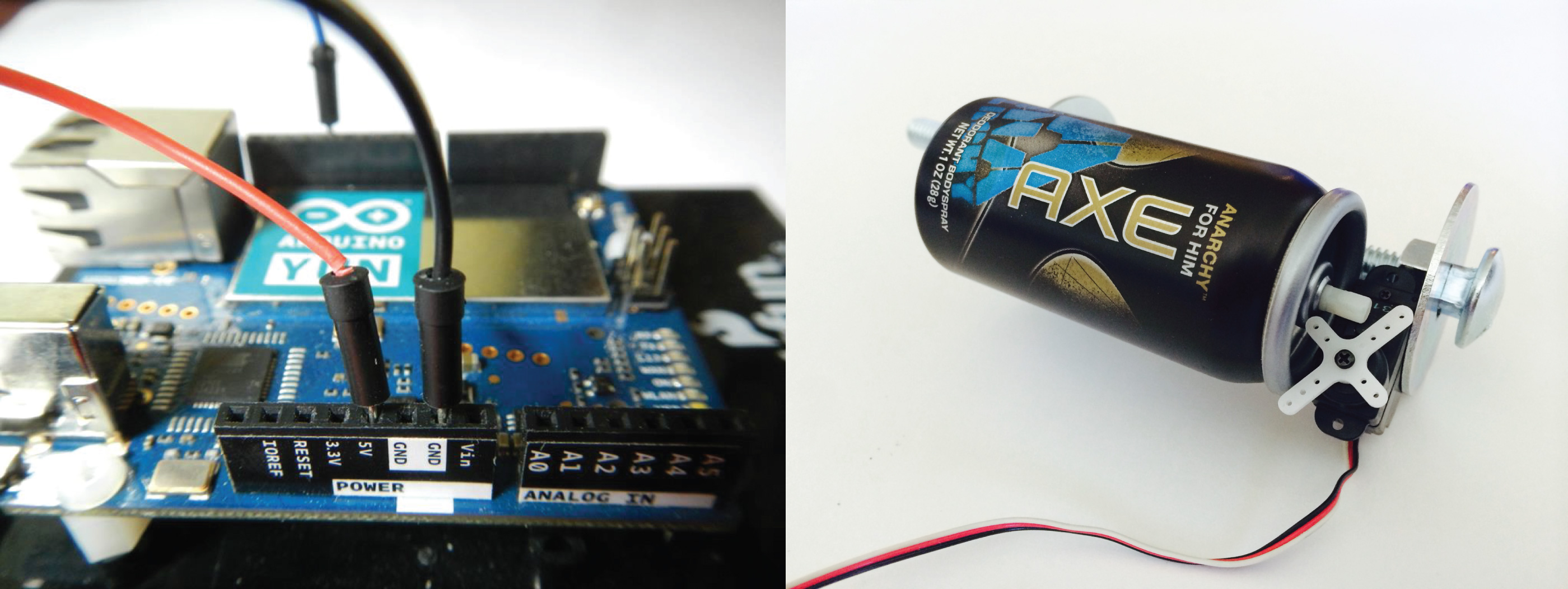 We created a candle devise using an Arduino Yun and a servo that woud release a spray of Axe when a guy tweeted at his selected female.